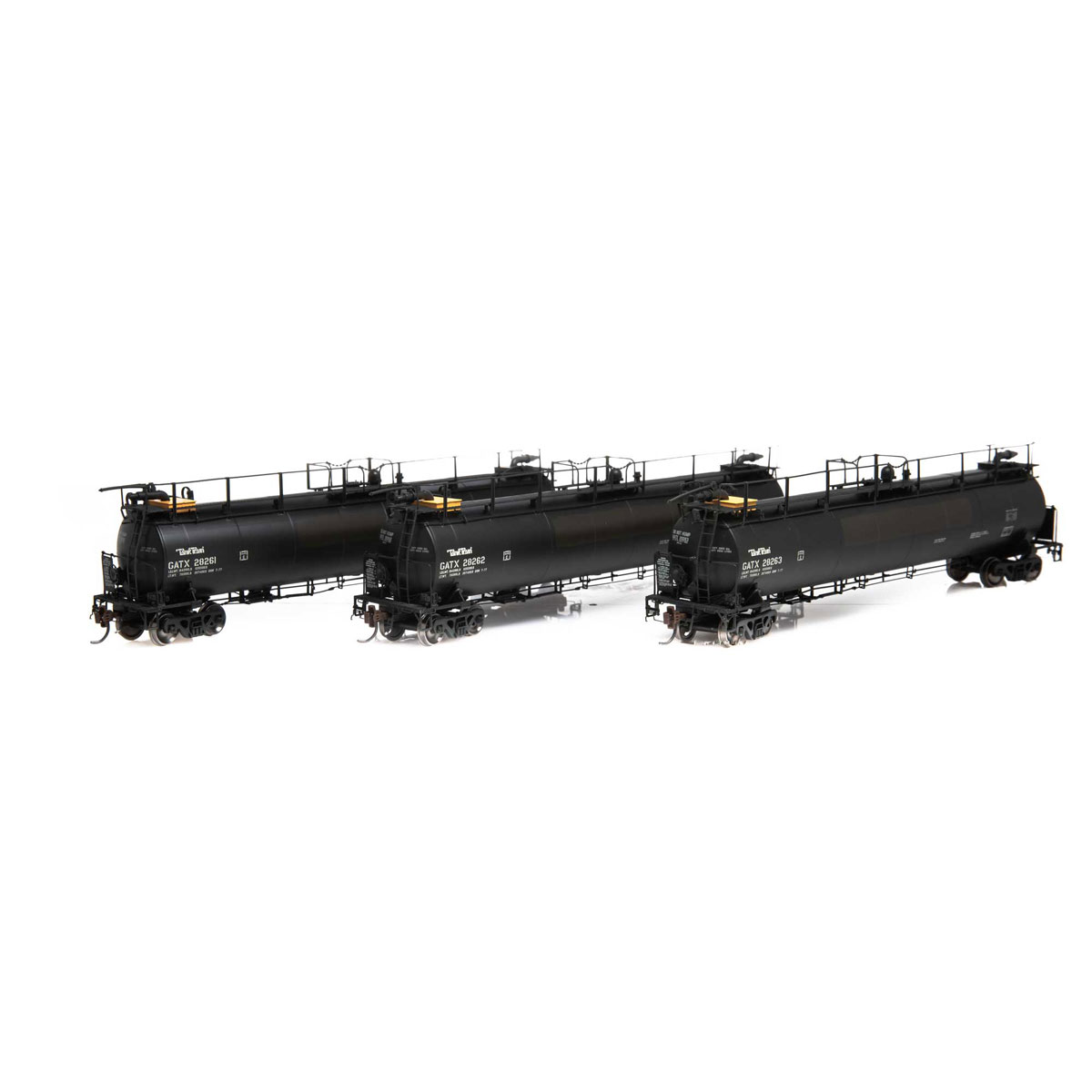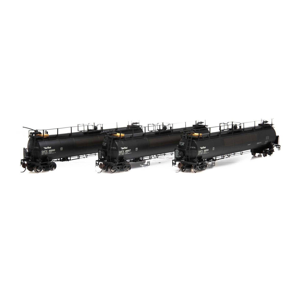 These all-new Athearn Genesis models represent 23K-capacity GATX TankTrain cars from the 486-number series (built in 1977), and 282-series (built in 1982). Based upon GATX diagrams, as well as photos and field measurements taken from prototype TankTrain cars at GATX’s West Colton repair facility, these new Genesis models faithfully replicate the prototype differences between the two different series’, including variations on the tank saddles, walkways, manways, brake rigging, and transfer piping. While these cars are most closely associated with Southern Pacific, TankTrain sets comprised of these cars have been, and can be seen in operation across the country. Grand Trunk Western, for example, operated TankTrain cars from the 486-series in the Great Lakes region, hauling fuel oil, in the late 1970s. And despite construction of a pipeline that eliminated the need for Southern Pacific’s original routing of TankTrain equipment, a new TankTrain, operated by Southern Pacific successor Union Pacific along the former SP “Coast Line”, operates to this day with many of the same cars, from a loading facility in San Ardo, California, to a refinery in Carson, California.