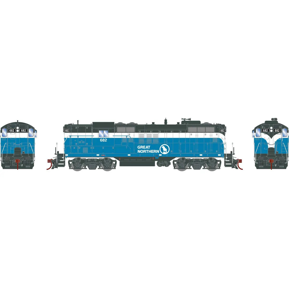 In 1967, Great Northern introduced a new paint scheme, consisting of blue, white, and dark grey-green. Known as the Big Sky Blue scheme, it took its name from an unofficial nickname for the state of Montana. Several of GN’s GP9 locos received the treatment as depicted here.