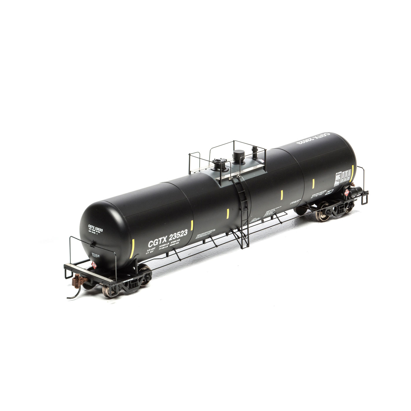 • Separately applied walkway platform, manway, outlet, ladders, brake rigging detail, safety rail supports and tank saddles