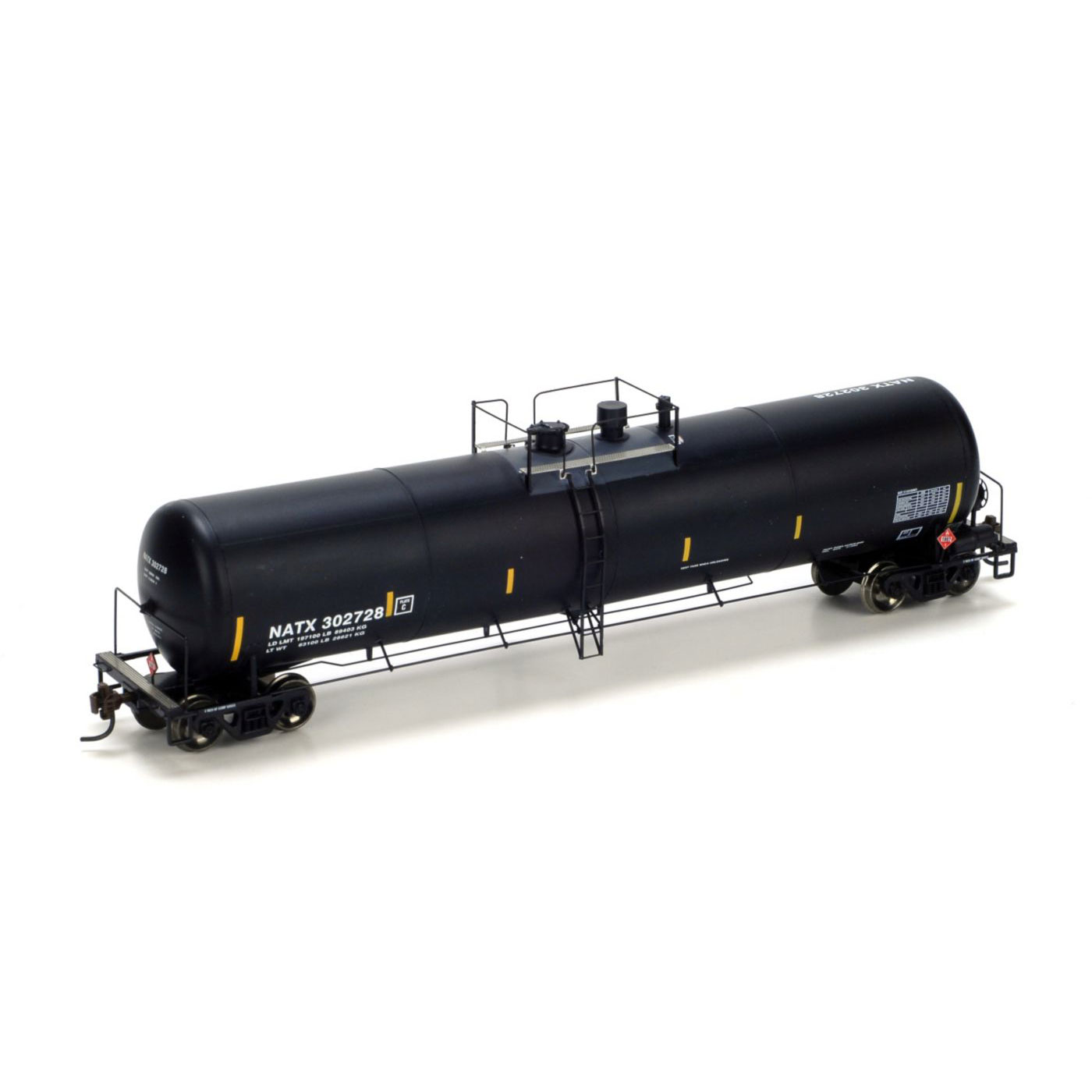 - Separately applied walkway platform, manway, outlet, ladders, brake rigging detail, safety rail supports and tank saddles