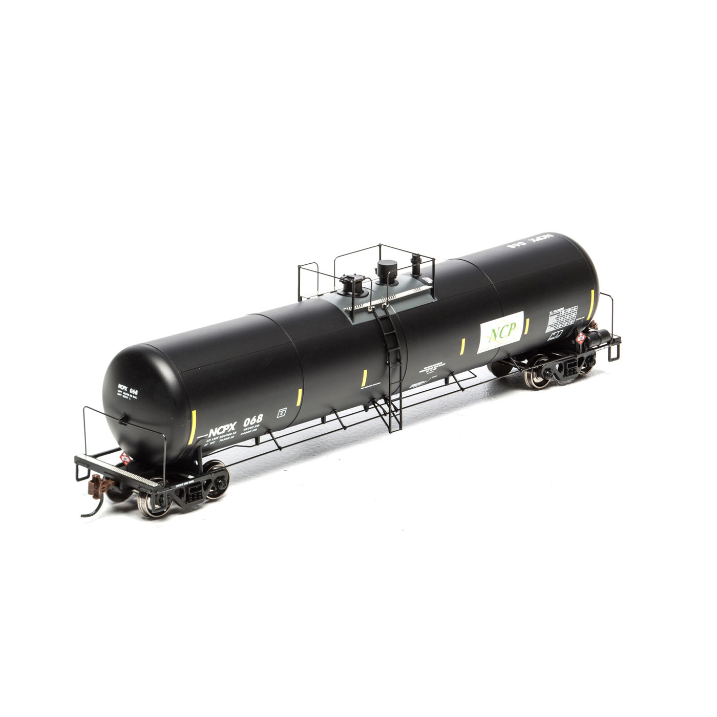 - Separately applied walkway platform, manway, outlet, ladders, brake rigging detail, safety rail supports and tank saddles