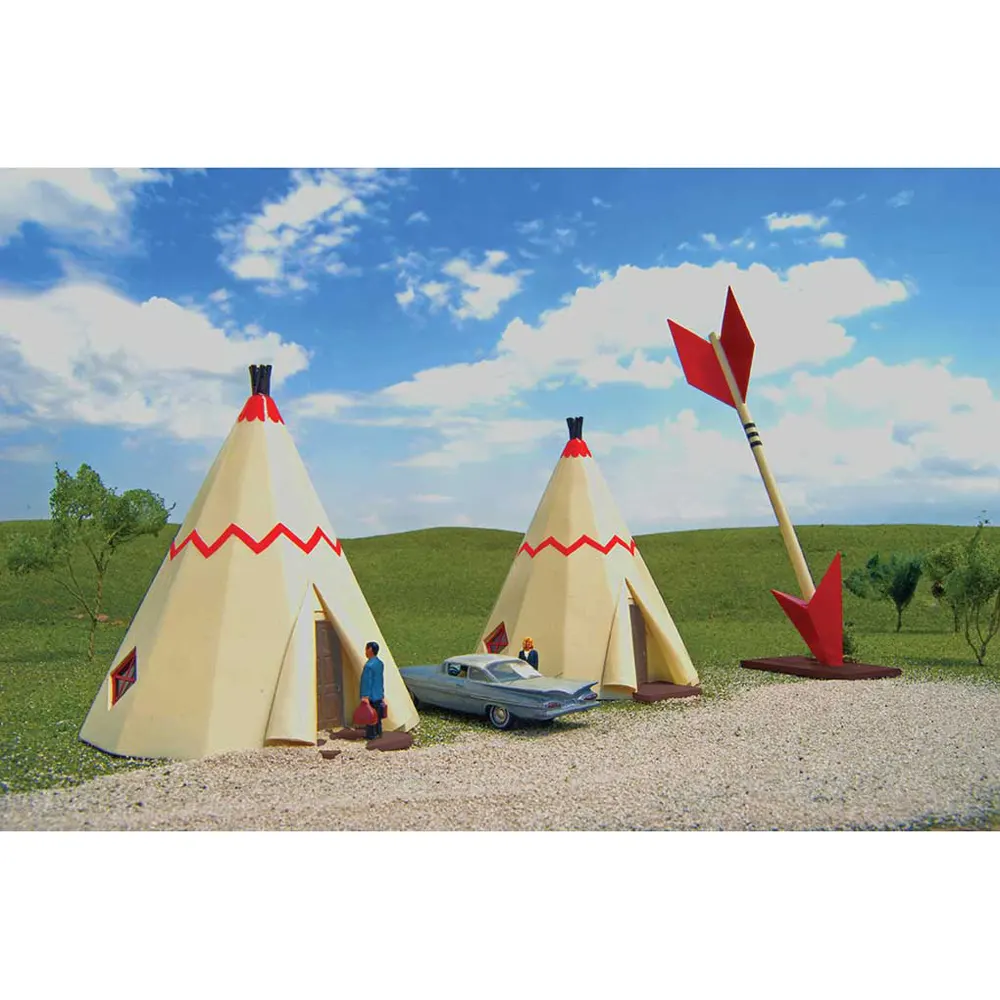 Based on an actual building found along America’s highways, this fully assembled model is layout ready. With an oversized arrow for a sign and two teepee-shaped rooms, this roadside attraction remains a popular stop for tourists. The prototype is still in use today. The unique cast-resin model will be a standout on any layout from the steam era to the present. It’s also ideal for collectors.