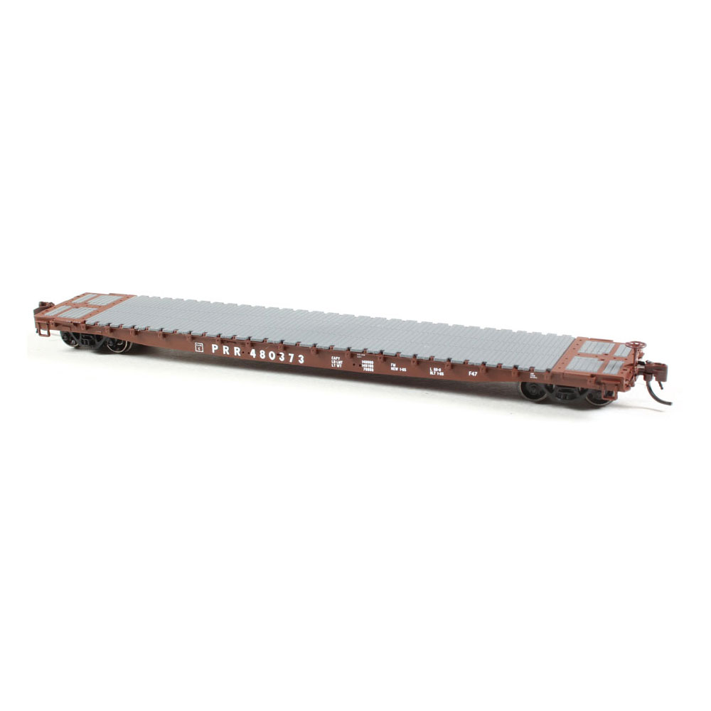 The 60′ General Steel Castings (GSC) flatcar is a car of tremendous versatility. The General Steel Castings (GSC) 60’ flatcar served nationwide in service on many railroads starting in 1956. They were used in lumber, wallboard, poles, and heavy equipment services, to name a few. These flatcars were often photographed hauling “wrecked” cars, and many still operate today in various company service roles. GSC, located in Granite City IL, supplied either complete cars or cast steel flatcar bodies to various railroads. Railroads that elected to purchase only the bodies would then equip the cars with components preferred for projected service.