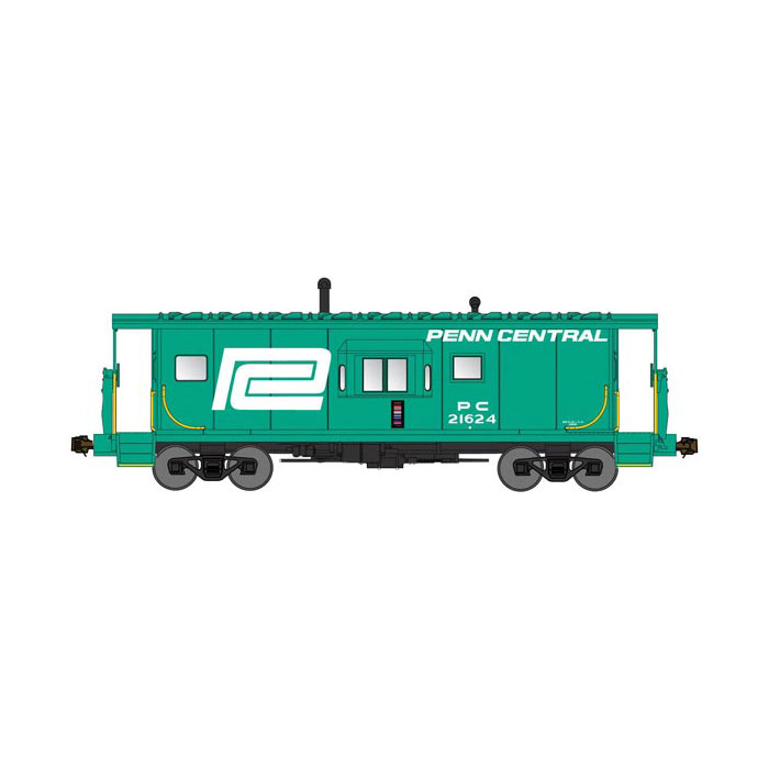New York Central had several variations of their Century Green paint scheme on their half-bay window caboose. This version included the “Road To The Future” slogan (in a different lettering style than used on subsidiary Peoria & Eastern.) In addition, the roof of the bay windows was now painted white.