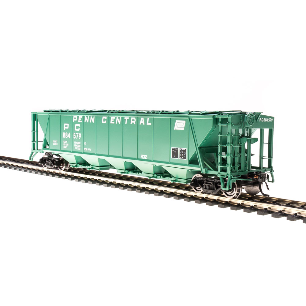 A total of 300 cars were built by the PRR at Altoona between July 17, 1948, and October 11, 1948, in number series 253500-253799. Welded construction was used for both the superstructure and the underframe. The material was high tensile steel. The cars had a plain welded roof and 14 roof hatches, each with 3 by 3 opening. The metal running boards were Apex Tri-Lok. There were four bulkheads, creating five bays, each having two hopper openings measuring 13″ by 24″. The hopper bottom mechanism was furnished by Enterprise Railway Equipment Co. The horizontal sliding doors were hand operated, using a rack and pinion. The trucks were Class 2E-F22A, made by American Steel Foundries with Type A-3 Ride Control. The couplers were Type “E” with Imperial rotary bottom operated uncoupling devices.