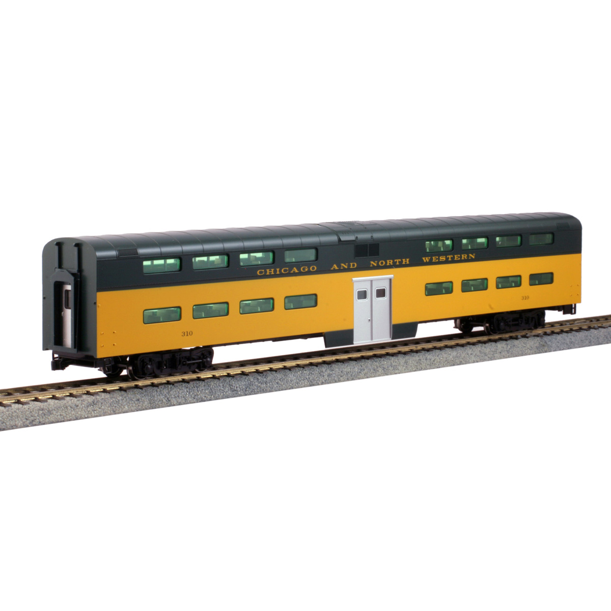 All of Kato’s Bi-Level gallery cars feature prototypical interiors and the distinctive green-tinted windows. The Cab/Coach models are equipped with Golden White LED directional head/taillights which can be switched on and off for operation mid-train.