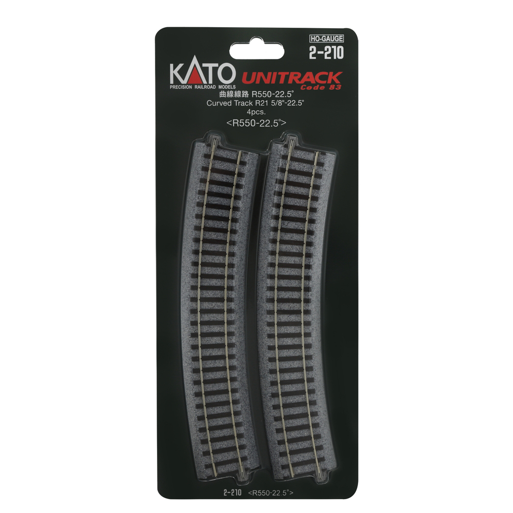 Kato HO – Unitrack 550mm (21-5/8″) Radius Curve Track 22.5-Degree – 4 Pack