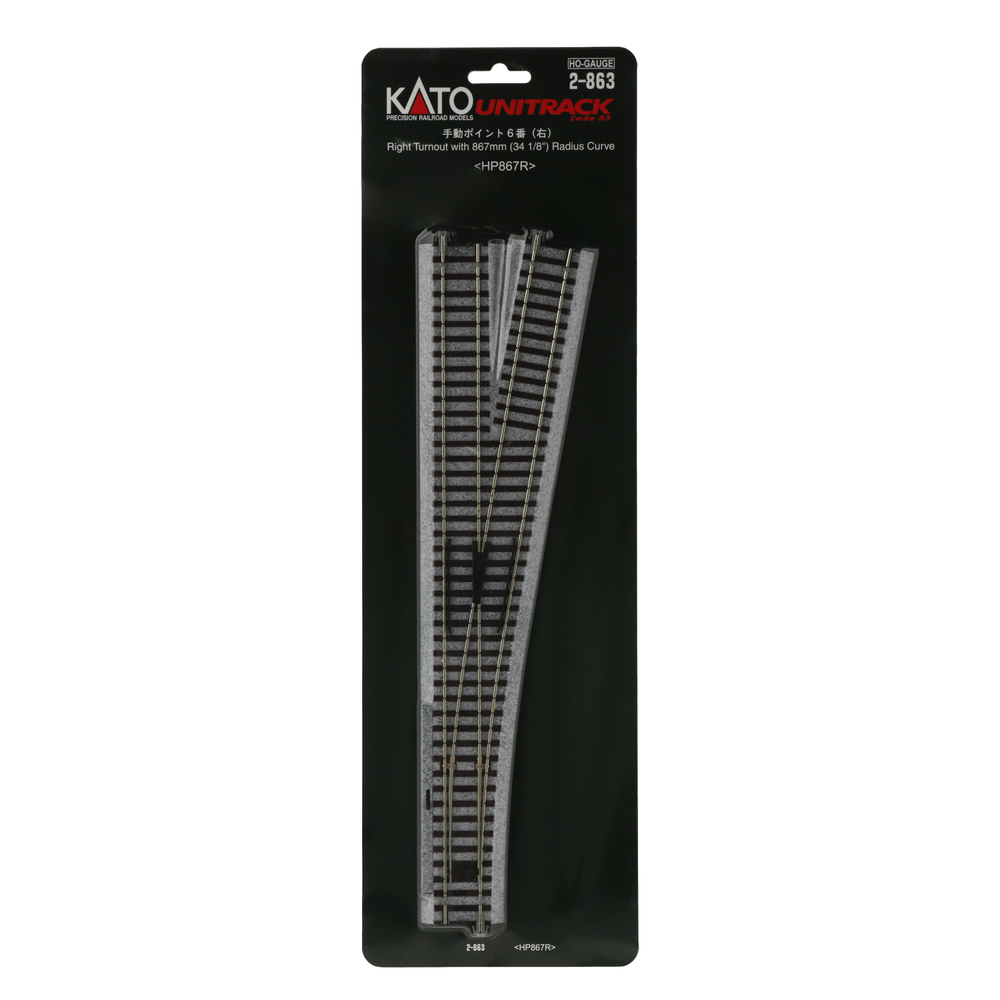 Kato HO – Unitrack #6 Manual Right-Hand Turnout – 867mm (34-1/8″) Radius