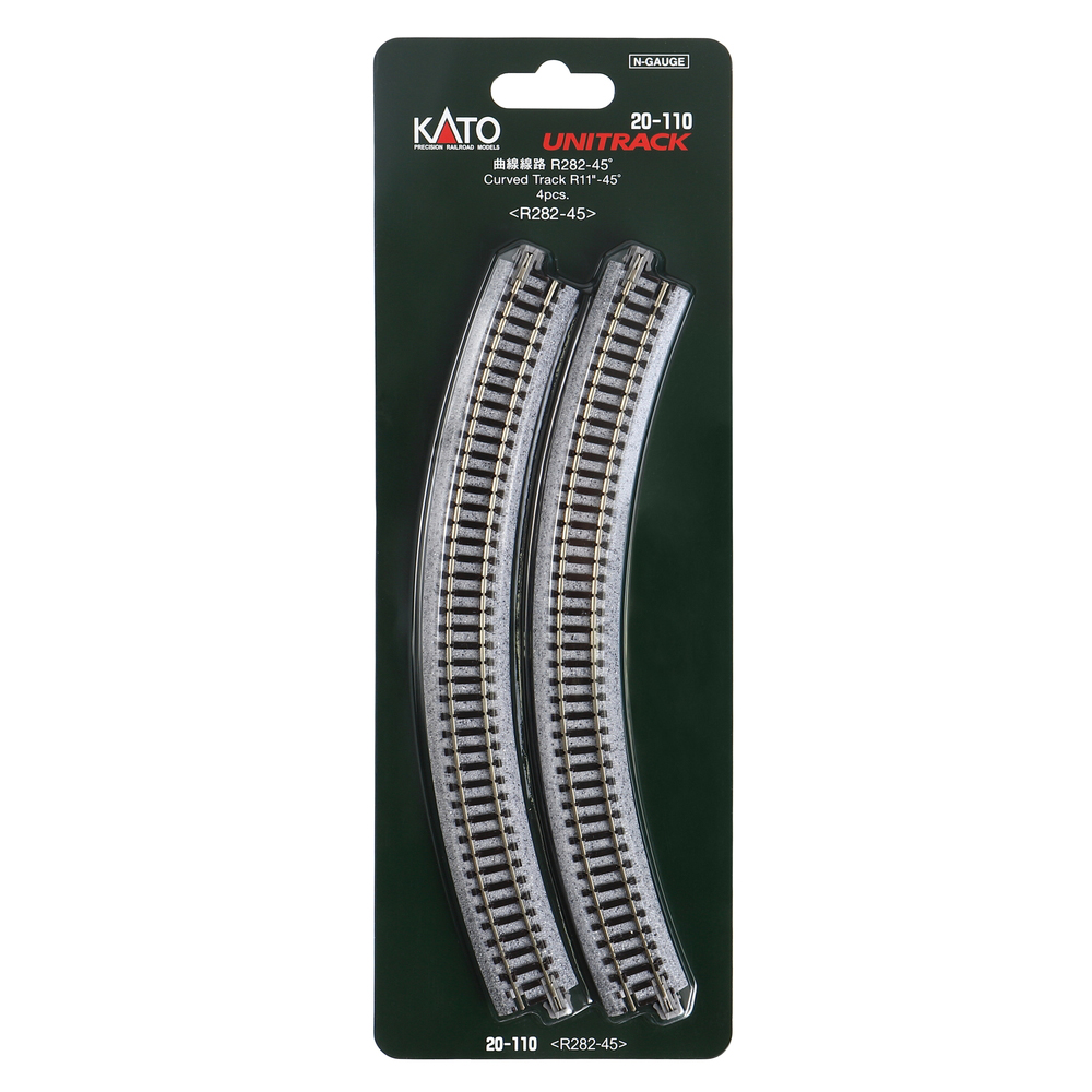 Kato N – Unitrack 282mm (11″) Radius Curve 45-Degree – 4 Pack