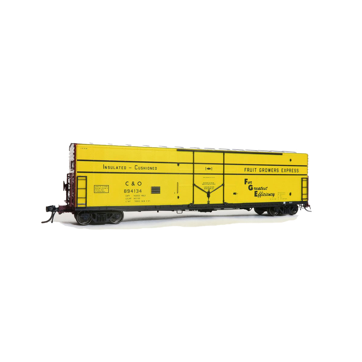 In 1965 Fruit Growers Express at their Alexandria, VA plant started to build a custom car design for the Procter and Gamble Company (P&G) of Cincinnati, OH. P&G specifically required a 12-foot wide door opening and FGE re-designed their popular insulated boxcar design to the customers requests. FGE purchased their underframes already pre-assembled by fabricators Berwick in PA they were shipped to the Alexandria plant to be rivet assembled. The entire boxcar was riveted together from the bottom up, this included the unique 7+7 ADR (alternate double rivet pattern). These CADILLACs of the FGE fleet were insulated (foamed-in-place), had a proven 20-inch cushioned underframe (Keystone and Freight-Saver), all had Evans DFB Bulkhead loaders and Evans Side-wall Fillers as per customer specifications for palletized loads. Very late in their careers once off P&G service they have been used for other assignments like beer loading at Coors, Golden, CO, amongst others.