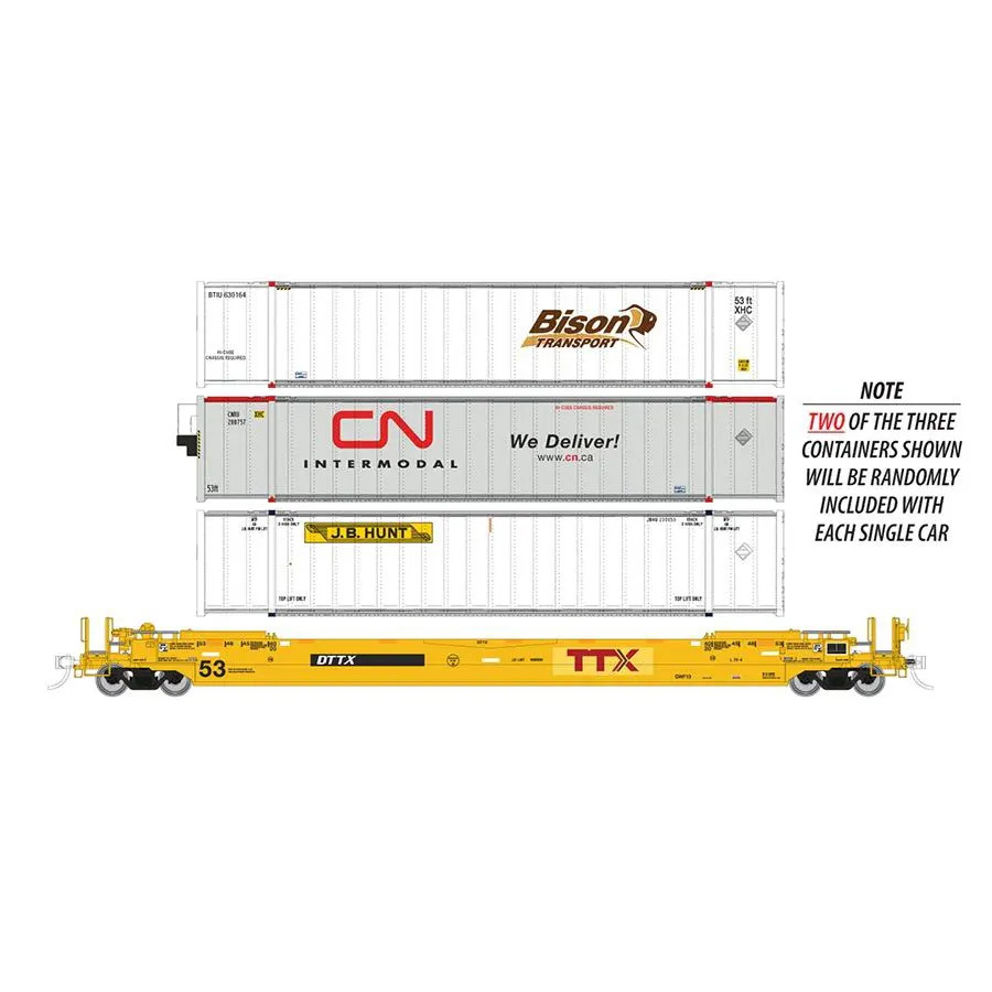 Rapido HO 53′ Gunderson Husky-Stack Well Car Trailer Train “Patched” w/ Containers
