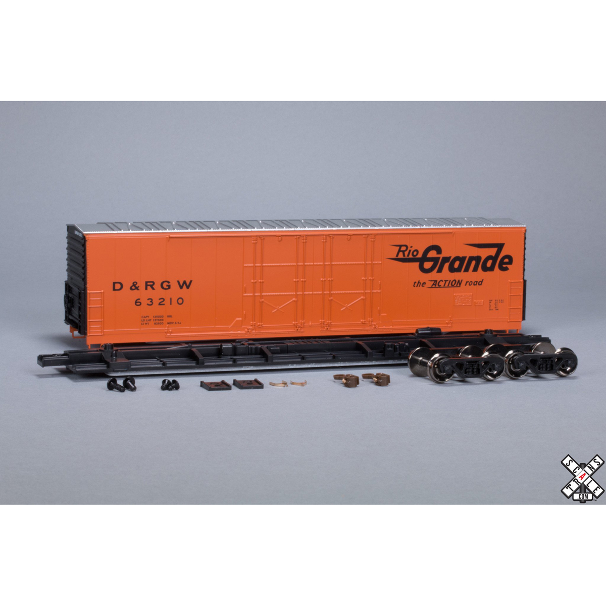 This freight car kit represents a typical Evans-built 5100 cubic foot RBL boxcar or USRE “clone”. “Clones” were built in USRE facilities to Evans specs. Lasting from the late 1960s well into the 2000s, the Evans 5100 cf Boxcar has served a variety of railroads and private owners.