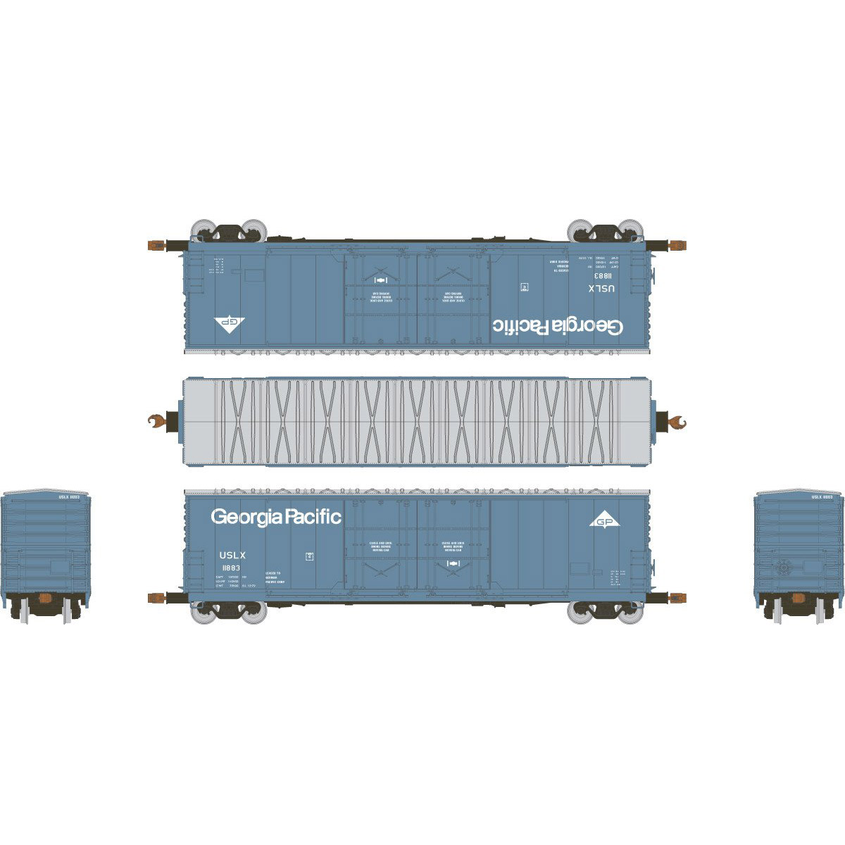 This freight car kit represents a typical Evans-built 5100 cubic foot RBL boxcar or USRE “clone”. “Clones” were built in USRE facilities to Evans specs. Lasting from the late 1960s well into the 2000s, the Evans 5100 cf Boxcar has served a variety of railroads and private owners.