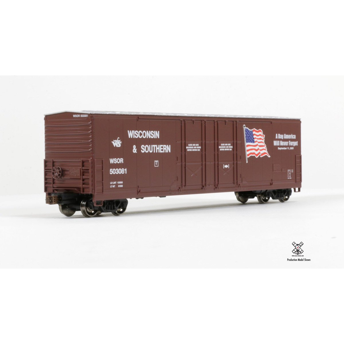 ScaleTrains HO Kit Classic Evans 5100 RBL 8′ Double-Plug-Door Boxcar Wisconsin Southern “9-11 Tribute”