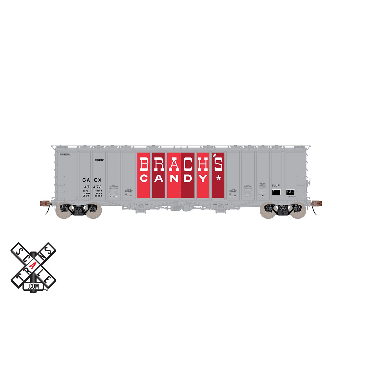 - Highly-detailed Barber S-2 100-ton trucks with finely rendered raised foundry data, rotating bearing caps, side bearing detail, and truck-mounted brake beams