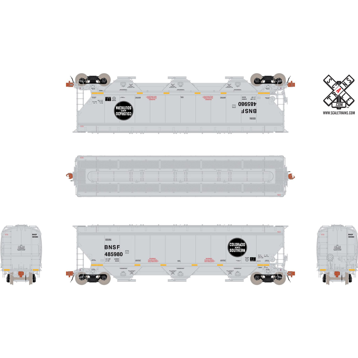 The modern Gunderson-GIMSA/Concarril 5188 Cubic Foot Covered Hopper is one of today’s most popular covered hoppers. They are commonly seen in unit grain trains as well as mixed manifest freights and can often be found alongside Trinity 5161cf Covered Hoppers.