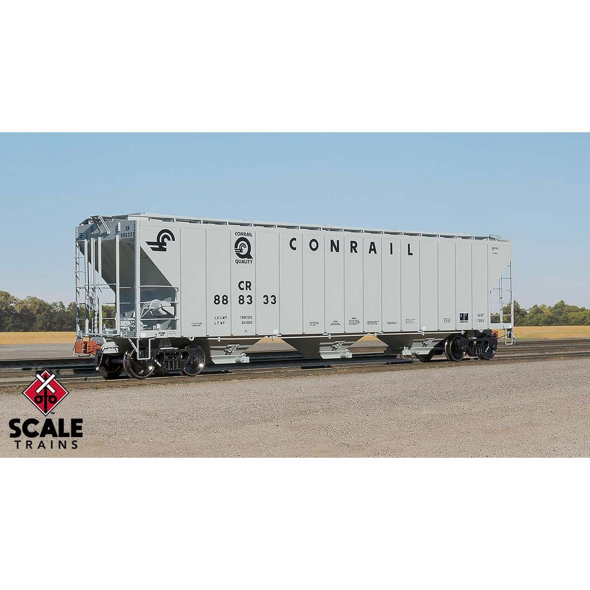 - Highly-detailed Barber S-2 100-ton trucks with finely rendered raised foundry data, rotating bearing caps, side bearing detail, and truck-mounted brake beams