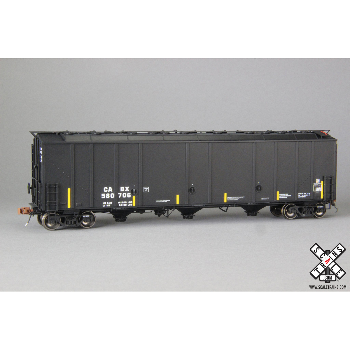 - All-new ASF Gould-cast 70-ton Ride Control Trucks with finely rendered raised foundry data, rotating bearing caps, separate brake beams, and side bearing detail
