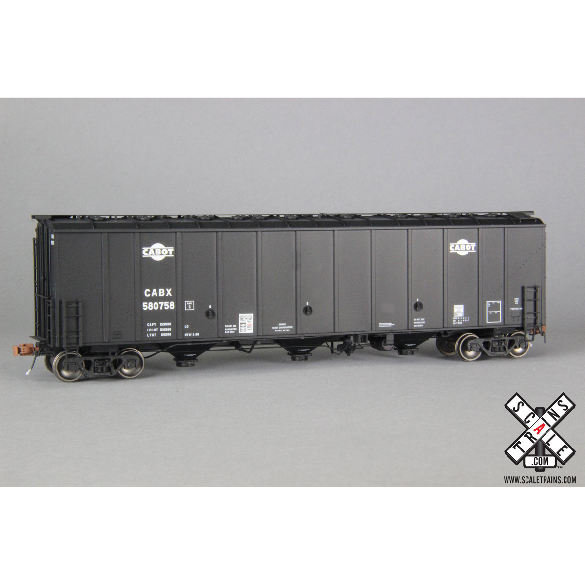 ScaleTrains HO Rivet Counter Thrall 5750 Carbon Black Covered Hopper Cabot “Logos, CABX”