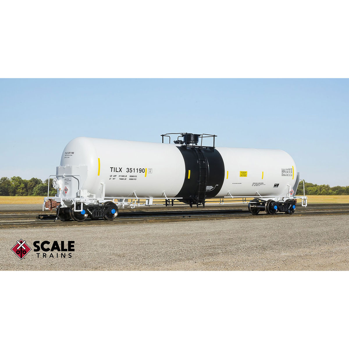 Since 2012, TrinityRail has built thousands of 31,000 Gallon Crude Oil Tank Cars to meet the growing needs of the oil industry. Mile-long unit trains with 100+ cars crisscross the United States and Canada daily to deliver crude from the oil fields of North Dakota, Wyoming and Montana to refineries on the East, Gulf and West Coasts. These cars are now being used in ethanol service as well. The TrinityRail tank car is easy recognizable by its unique trapezoid-shaped end shields.