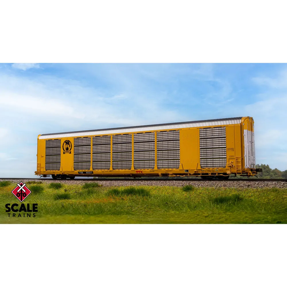 - Highly-detailed ASF low deck swing motion trucks with finely rendered raised foundry data; rotating black Timken three-sided bearing caps; separate “truck-mounted brake” brake beams; and side bearing detail