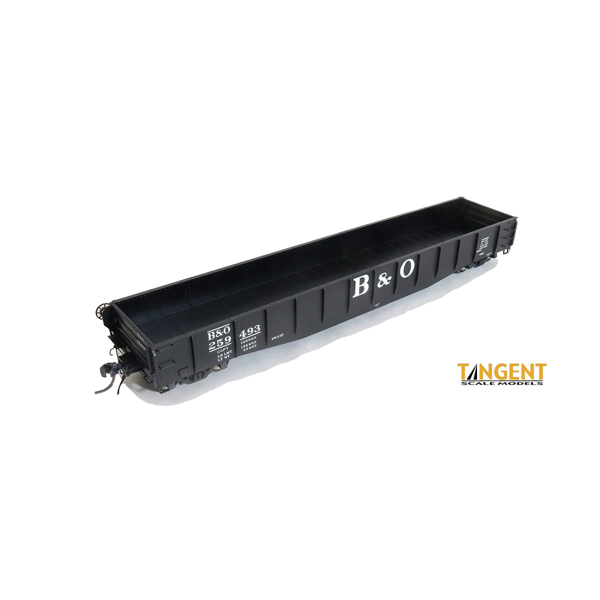 Tangent Scale Models is pleased to offer the 52-6 riveted 70-ton drop-end gondola car as designed and produced by Bethlehem Steel. First produced in March 1937 for Baltimore & Ohio Railroad as class O-59, B&O alone purchased 4,000 of these drop-end gondolas which served every corner of North America in many services. Five additional railroads purchased these Bethlehem-design gondolas in intervening years until production ceased in 1957, with some going to second-hand owners as well. Most of these gondolas were phased from revenue service by the mid-1980s, with many serving additional years in various MOW roles.