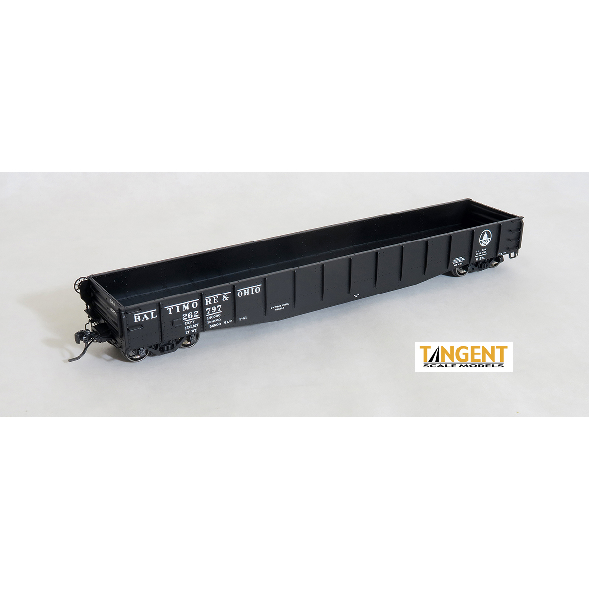 Tangent Scale Models is pleased to offer the 52-6 riveted 70-ton drop-end gondola car as designed and produced by Bethlehem Steel. First produced in March 1937 for Baltimore & Ohio Railroad as class O-59, B&O alone purchased 4,000 of these drop-end gondolas which served every corner of North America in many services. Five additional railroads purchased these Bethlehem-design gondolas in intervening years until production ceased in 1957, with some going to second-hand owners as well. Most of these gondolas were phased from revenue service by the mid-1980s, with many serving additional years in various MOW roles.