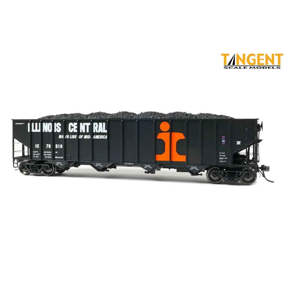 IC “Delivery Black 1968” replicates the large 1,000 car delivery for the IC in 1968. The Tangent model features an accurate 1968 body, with two stand-off grab irons on the left side of the body. Centralia was a big believer in rivet construction, and this hopper is full of them, inside and out! The Quad bays have separate door and door frame detail. The hopper doors themselves are fitted with intricate Keystone Monoloc locking mechanisms, accurate for this 1968 delivery of IC cars. If you peek at the centersill, you will notice the proper hanging brake linkage running between the bays, including the automatic slack adjuster with its protective shield. The B-End of the car has an accurate Ajax high handbrake, Morton brake step and modern brake wheel. Inside, the models have a gorgeous (and removable!) tipple-style coal load. These coal cars roll on Tangent 100-ton Barber S-2 trucks with separate truck brake beams and rotating Timken caps. IC painted the cars black with the classic orange “Split Rail” logo on the right.