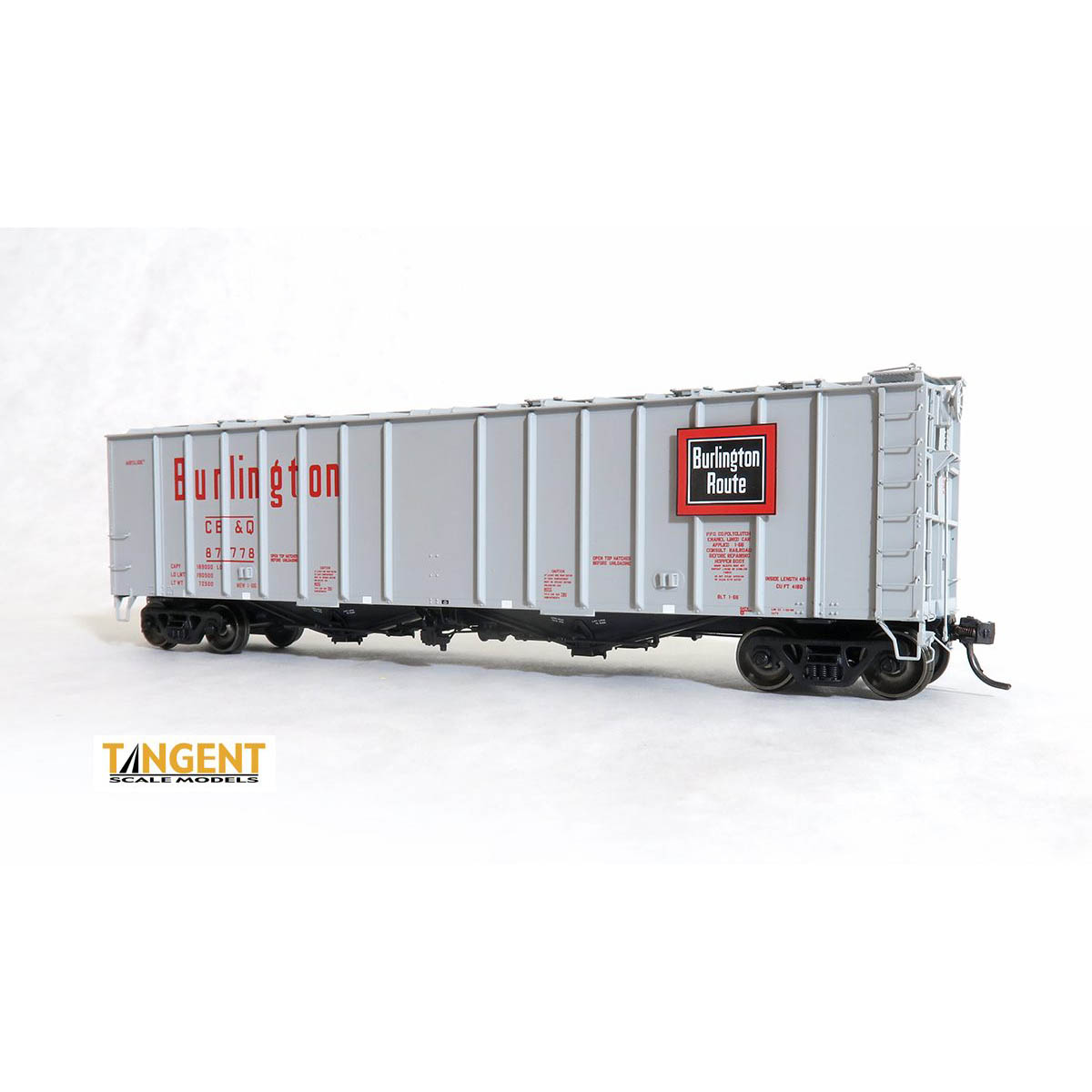 Tangent has included the distinctive “see through” bolster arrangements above the trucks. The 4180 Airslide hoppers include finely-detailed underframe pipe arrangements and are ready for any of the following services on your layout: flour, sugar, starch, fertilizer, feed, chemicals, plastics, carbon black, etc. Also, check out the correct “true-to-life” colors and “hyper-accurate” lettering including exact fonts and lettering placement. Tangent’s scale replicas operate as well as they look, equipped with free-rolling all-metal wheels and Kadee® scale couplers, meaning the models are truly ready to run.