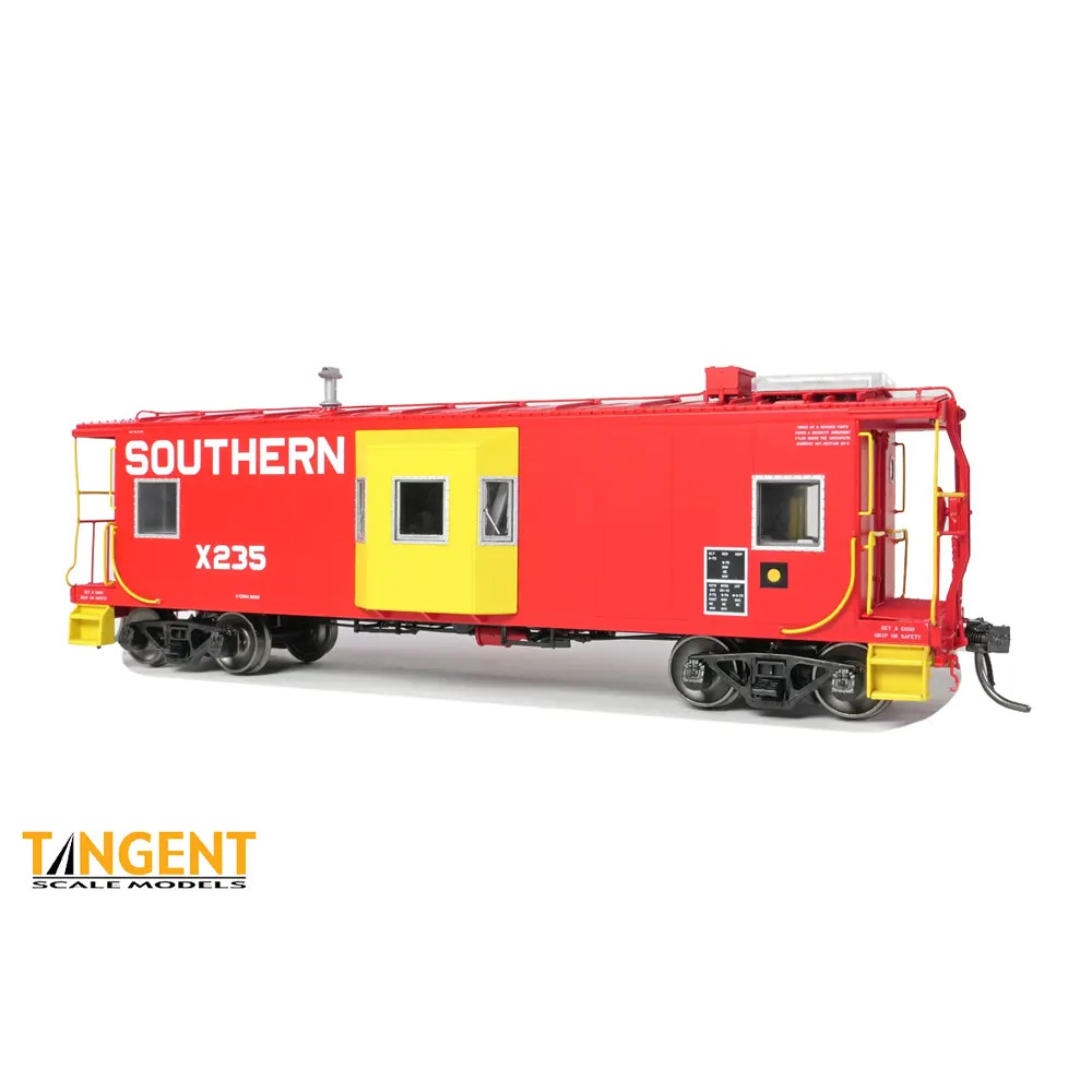 Southern Railway (SOU) Local Service “Repaint 1979 with Solar” w/ FRA End Light & Interior Lights shows off one of those paint schemes and configurations that is the very definition for many of a Southern Railway caboose. SOU refurbished their “Local Service” Gantt-built cabooses in the late 1970s, as radio use became more prevalent and electric red marker lights needed to be added to the ends. SOU’s innovative approach resulted in Solar panels being added to the top of the roof to charge a battery system on the prototypes. These Tangent caboose models stand out with a carefully replicated (non-working!) solar panel rack, clear “Lexan” covers, battery box and wire conduit setup. There are actually two prototype placements for the Solar panels. We chose the mounting brackets that line up with the end of the carbody for these car numbers, all refurbished and repainted in 1979. The models feature a repaint version of the Southern red scheme, including COTS panels and U-1 inspection dots as shown in the prototype photos. In this era, Southern was applying various safety slogans at the steps of each caboose. We have applied “GET A GOOD GRIP ON SAFETY” at the steps, accurate for the September of 1979 repaint/refurbish date of the models. The smokejack has been replaced in this era, with a distinctive flaring style. The ends have been modified. Notice the centered, lower round reflective end paddle is gone, and replaced with a red FRA marker light. This light is “solid on,” i.e. it doesn’t flash, matching SOU practice. The underframe features things like a red-painted air reservoir, ABD valve and brake cylinder, accurate for Southern painting practices. Underneath, the model is equipped with 50-Ton Plain Bearing Caboose Trucks with Leaf Springs. For lighting, this Tangent SOU model is equipped with “golden” interior lights and FRA red end lights. A wand is included to operate the lights – easy with no fuss! We are offering our SOU Local Service “Repaint 1979 with Solar” scheme in 4 numbers. The COTS data and Cobra Shoe stencils change slightly to match photos of each car number.
