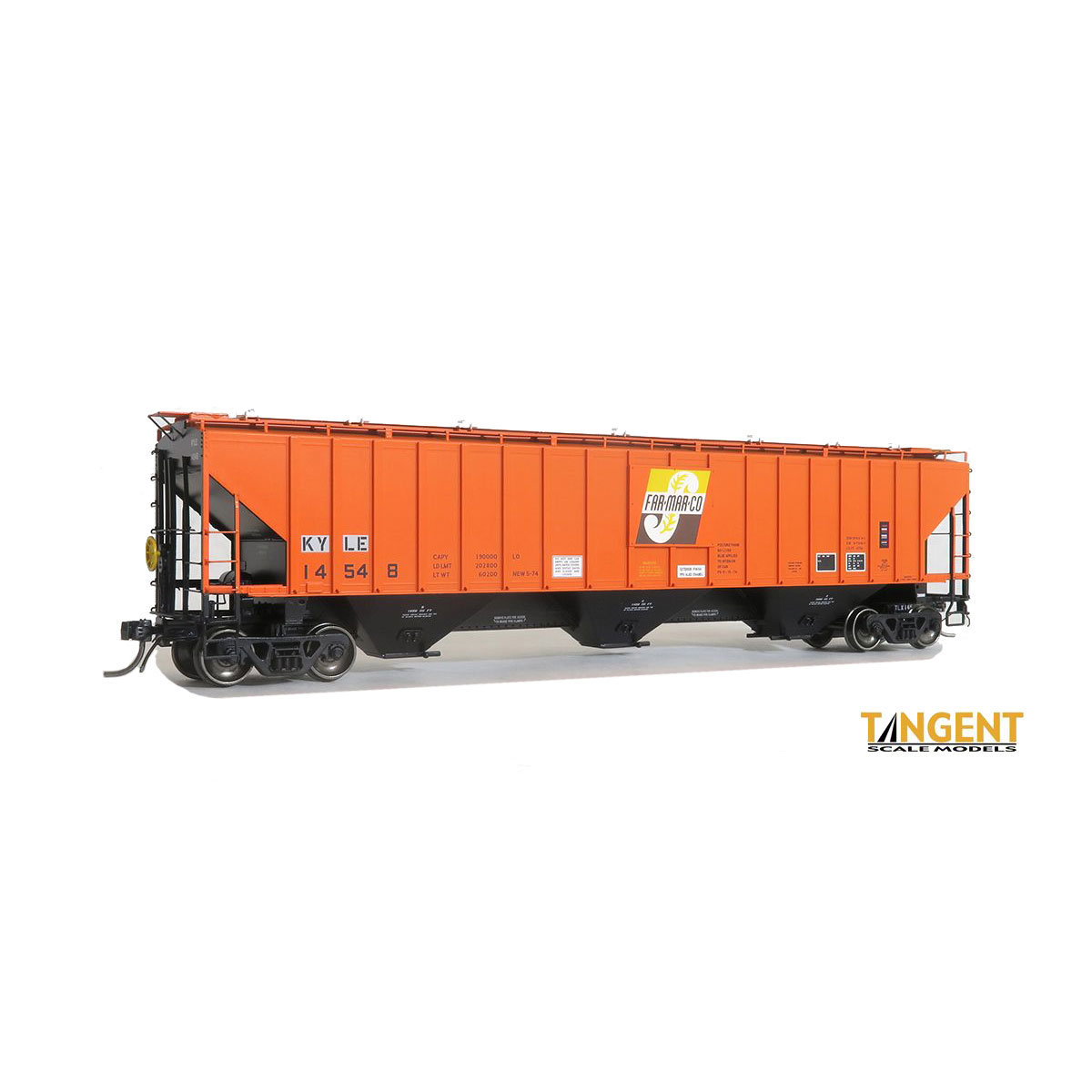 KYLE ex-PTLX “Far-Mar” 2008+ brings our Far-Mar scheme to the modern era! This version is tailored for 2008+ modelers when KYLE acquired a portfolio of used covered hoppers and restenciled them with KYLE reporting marks. Our sample car was photographed at the ConAgra transload elevator at Alton IL.