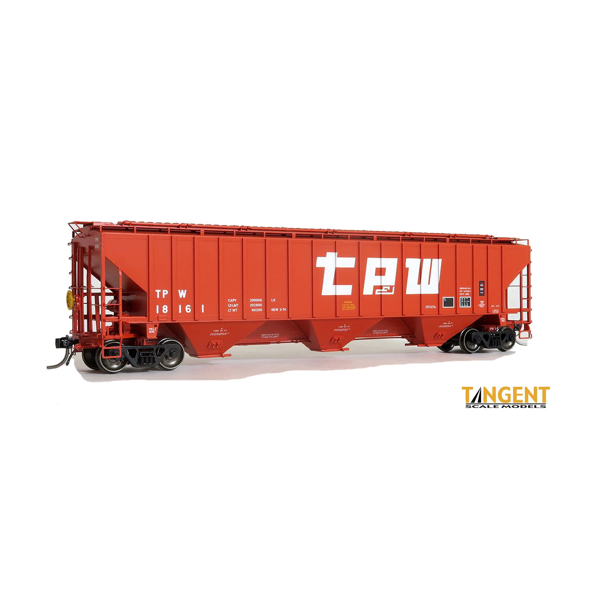 TP&W “Original 2-1974” which is TP&W’s only 4750 order was decorated, well, like only a TP&W car could be. An incredible shade of red complete with bold white graphics. Accurate TP&W graphics, to the truck brake details, to the individual Hyatt roller bearing caps.