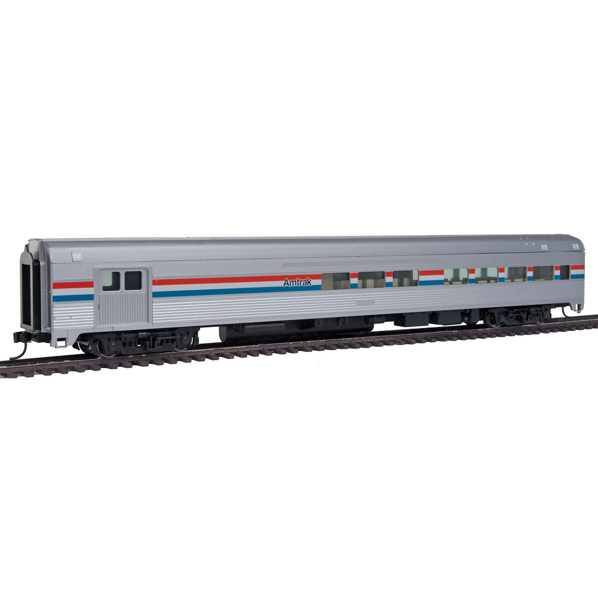 Add a place to relax on your classic streamliner quickly and easily with this WalthersMainline HO Scale 85′ Budd Baggage-Lounge! Nicely detailed, affordably priced and built tough for years of dependable service, this car is based on fluted-side cars used by many railroads.