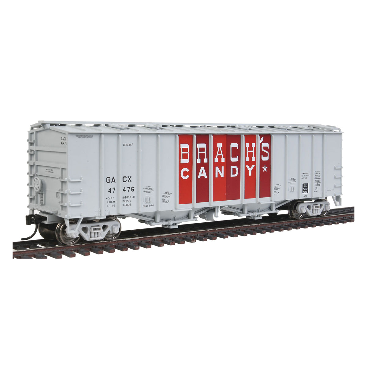 Introduced in the 1960s, these models are accurate replicas of the specialized Airslide(R) Covered Hoppers used to haul all types of powdered materials. The prototypes are fitted with a special interior fabric lining and pressurization inlets that allow compressed air to be blown through the load for faster unloading.