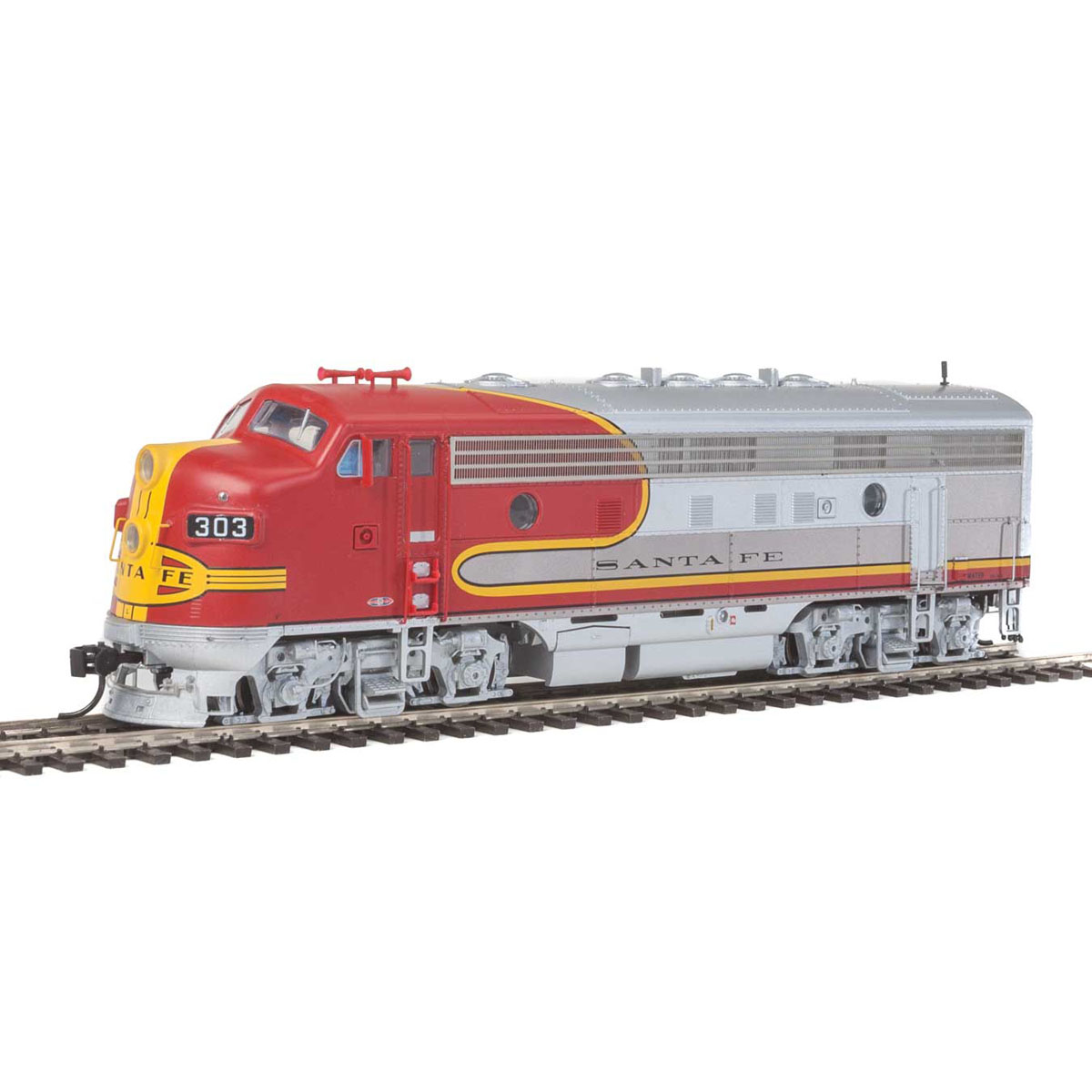 Pride of the railroad, these gleaming engines pulled the San Francisco Chief, Super Chief, El Capitan, and other Santa Fe streamliners for decades. Several authentic details have been newly tooled for added realism, including a 48″ dynamic brake fan, a brass Nathan five-chime air horn, and separately applied late-style water fillers on both A and B units. A must for any Santa Fe modeler, each engine is finished in classic Passenger Warbonnet colors highlighted by a plated metal finish, and available with with Tsunami(R) sound for operation on DCC or DC layouts.