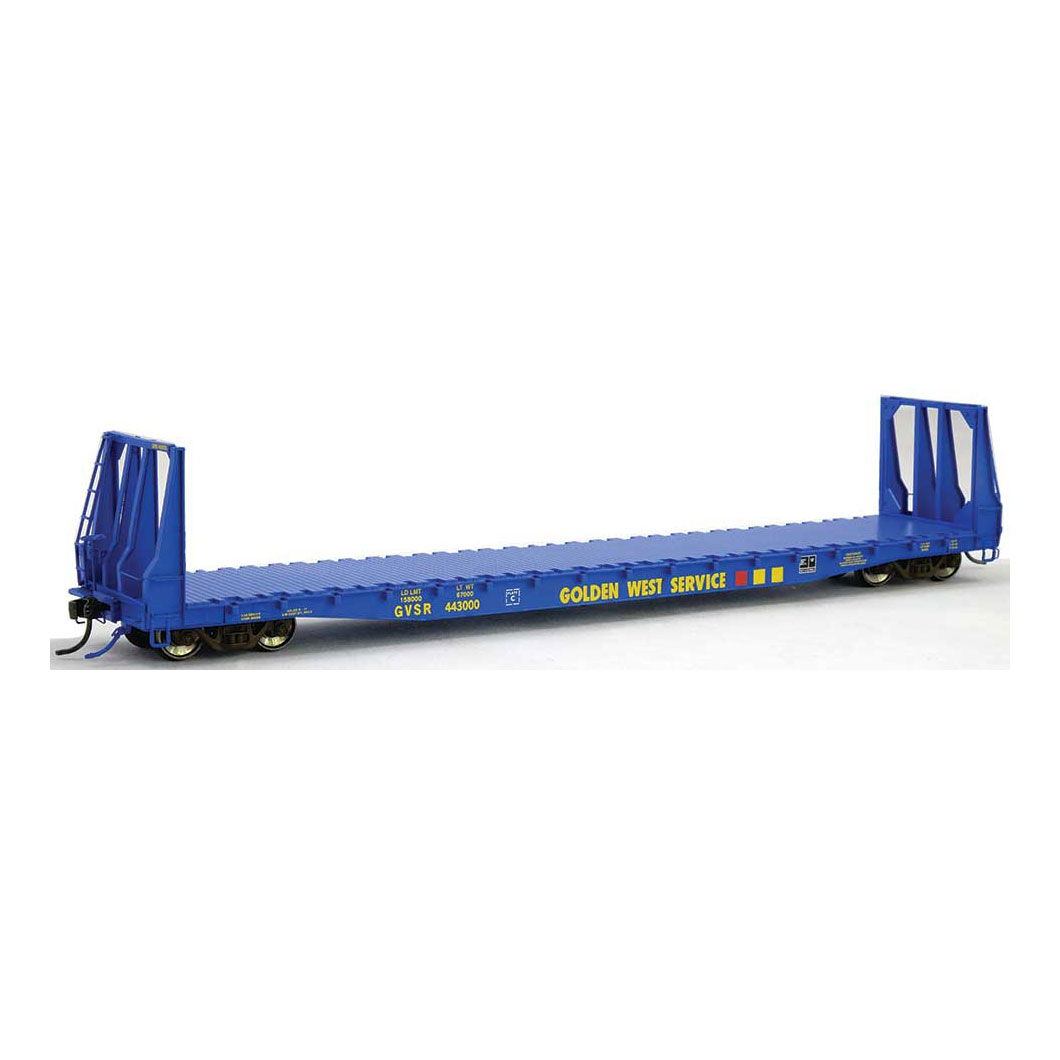 Developed at the request by S.P. shippers wishing for a 57 feet of clear space on bulkhead flats to allow full utilization of 70 ton capacity before it “cube” out. Â S.P. paid Gunderson (GBEC) $12,186 each for bulkhead equipped flats and $10,000 for plain flat cars. It took 10 gallons of Sherwin-Williams “Metal to Metal” Freight Car paint per car. Bulkhead flat cars were routinely pressed into lumber service even though they were intended for plasterboard service. Delivered in 3/66, 4/66, 5/66 as 125 plain decks and 125 bulkhead-equipped flats.