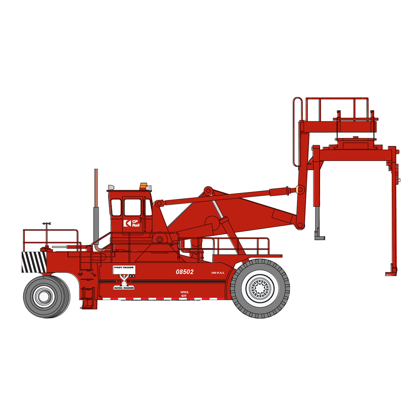 - Far side arm rotates up to clear top of trailer or container.