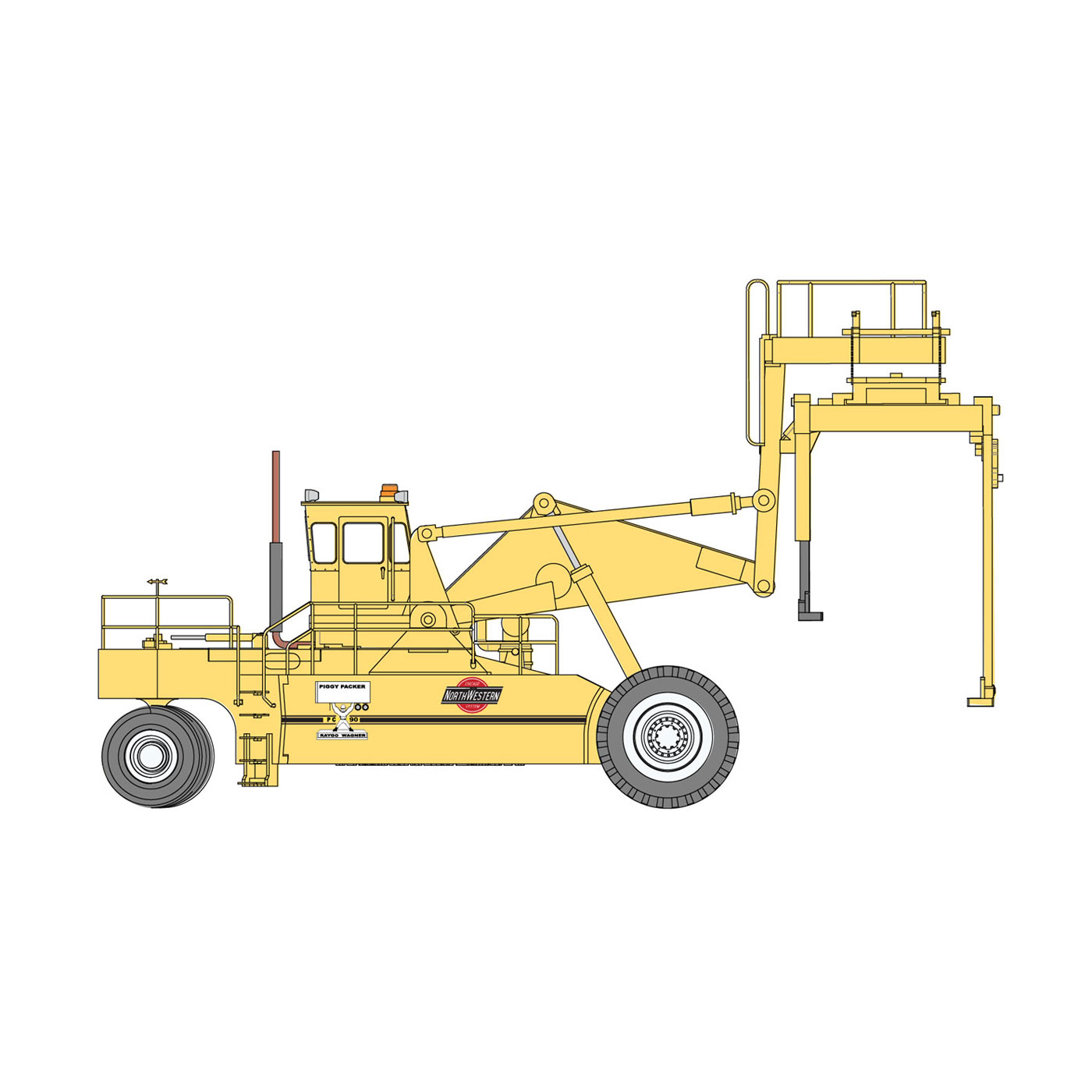 - Far side arm rotates up to clear top of trailer or container.